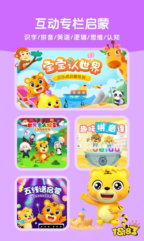 儿歌动画、识字拼音、英语思维、益智认知等互动素质启蒙内容,从新生儿开始,贝乐虎陪伴宝宝长大。