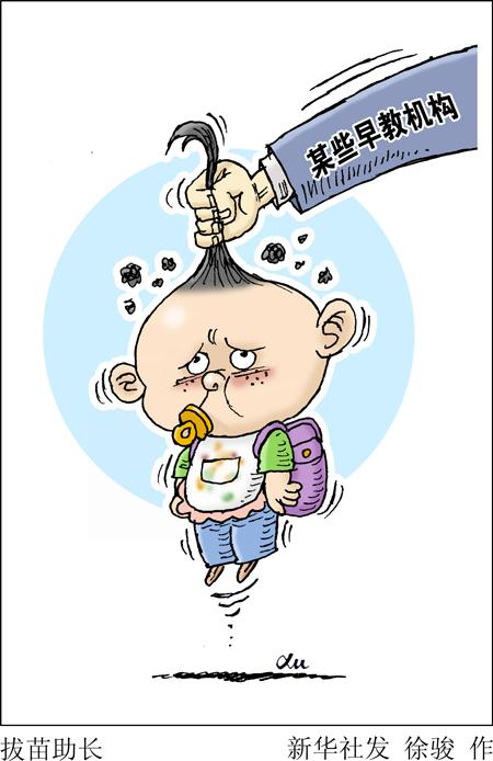 “有些早教机构按照家长的要求,针对两三岁的孩子开设唐诗、计算等超出年龄阶段的课程,把培养‘小大人’当成是早教的成功,这其实不利于幼儿智力的开发。”河南省心理健康研究所副所长赵悦玲说,很多家长和早教机构并不知道,这种“填鸭式”的拔苗助长,对孩子的智力开发有害无益。