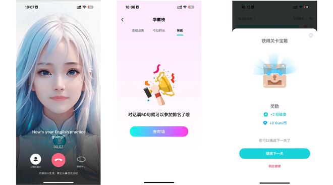 咕噜口语整合整套游戏任务机制,通过闯关游戏和学习奖励方式,让聊天变得更有趣。这特别适合少儿用户,将口语练习转化为轻松愉快的游戏体验,帮助孩子们在玩乐中克服学习枯燥,养成每天开口说英语的好习惯。